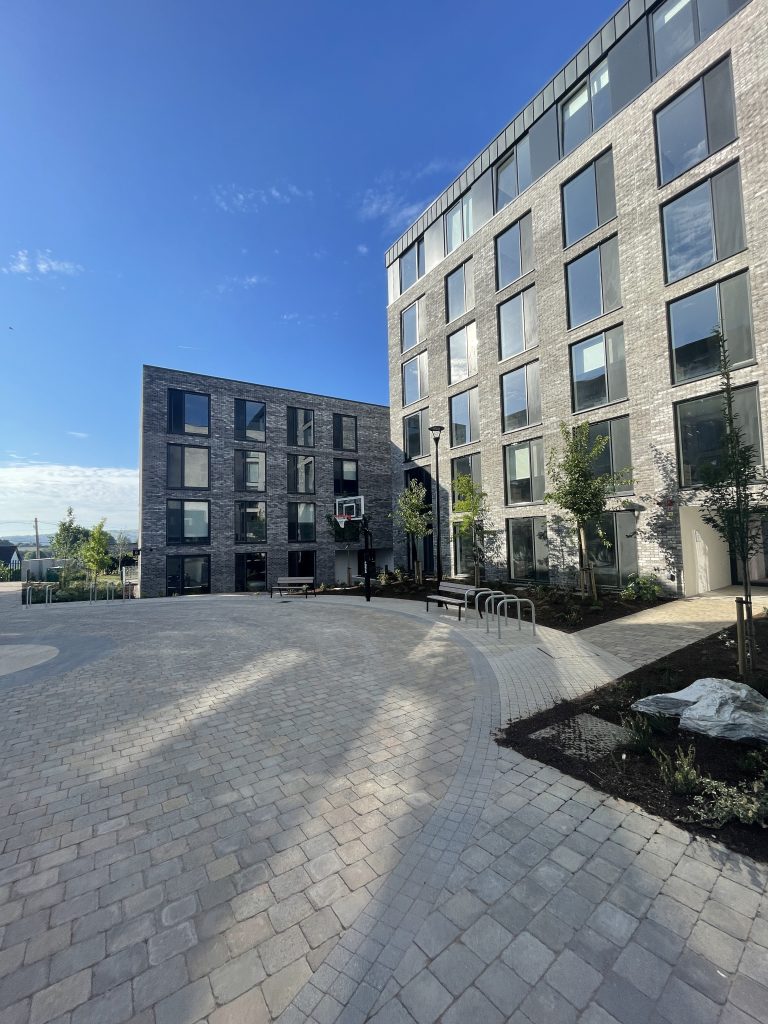 The development comprises 173,837 Sq. Ft. of purpose-built student accommodation (PBSA) delivered across five blocks, varying in height from four to six storeys and arranged around generous communal spaces. The building’s façade features extensive glazing, creating bright and naturally lit interiors for student living. The project achieved BREEAM Very Good Certification.
